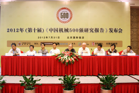 7月31日,由中國機械工業企業管理協會主辦,機械工業經濟管理研究院、世界經理人集團、中國機械網(www. Chinamach.com)聯合承辦的2012年(第十屆)《中國機械500強研究報告》暨《世界機械500強》發布會在北京隆重舉行。