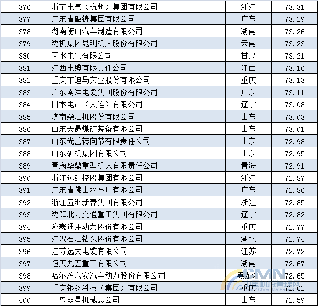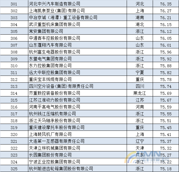 2013年中國機械500強排名