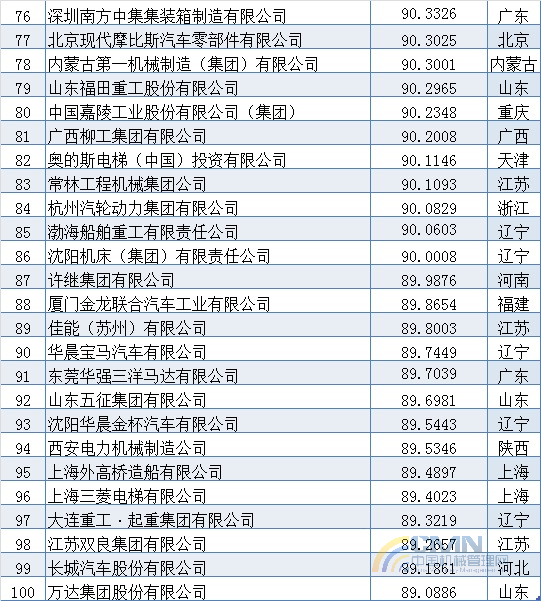 2006年中國機(jī)械500強(qiáng)排名(1-100)