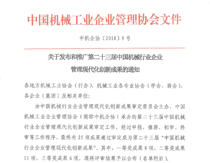 關于發布和推廣第23屆機械行業企業管理現代化創新成果的通知-中機企協〔2018〕9號.pdf