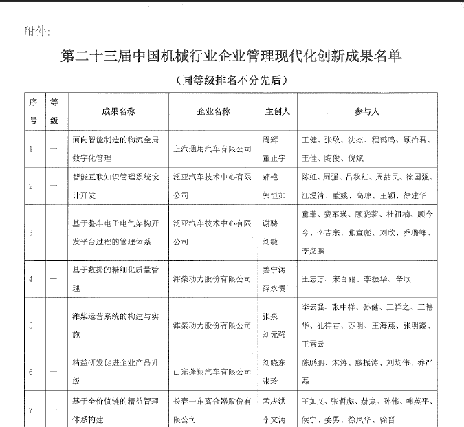 關于發布和推廣第二十三屆中國機械行業企業管理現代化創新成果的通知
