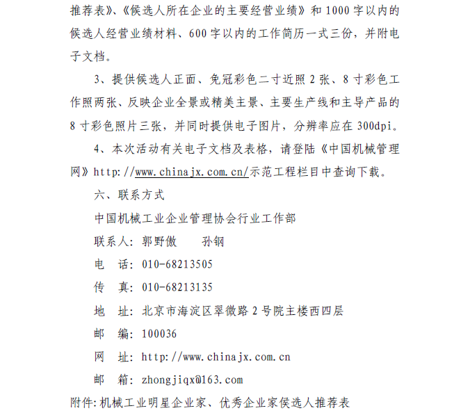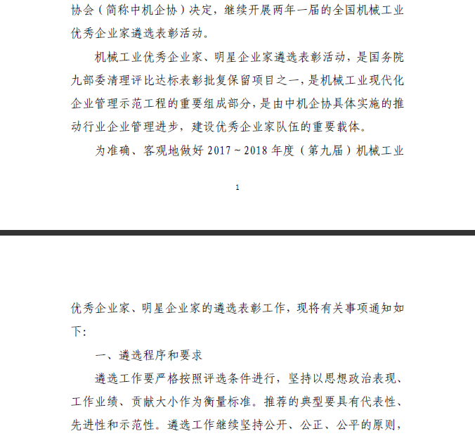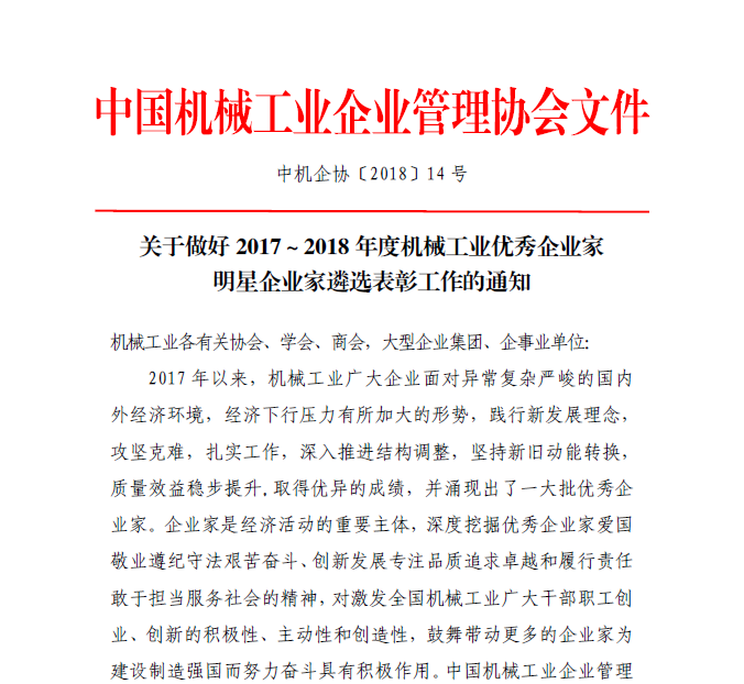 關于做好2017~2018年度機械工業優秀企業家、明星企業家遴選表彰工作的通知