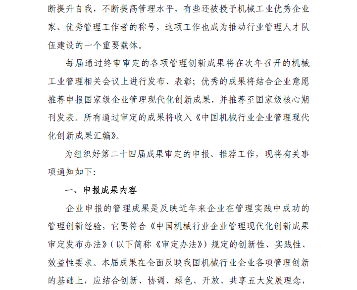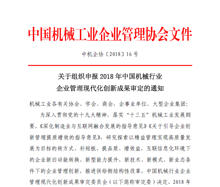 關于組織申報2018年中國機械行業企業管理現代化創新成果審定的通知