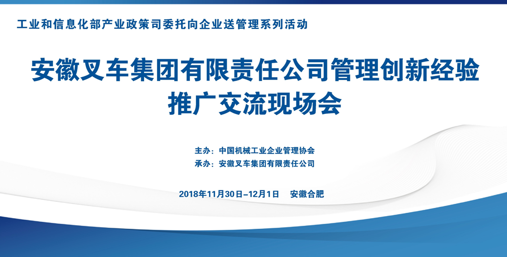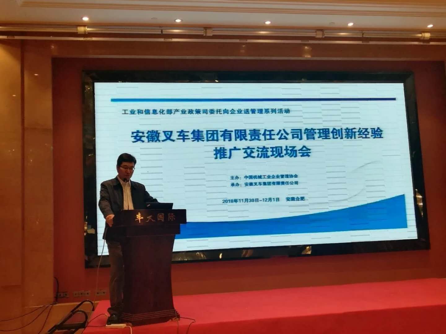 2018年11月29日-12月1日,工信部產業政策司委托中國機械工業企業管理協會(簡稱中機企協)主辦、安徽叉車集團有限責任公司(簡稱合力)承辦的機械行業“向企業送管理”現場交流活動在安徽省合肥市隆重舉辦。工信部產業司產業組織處處長匡佩遠,趙薛憶,中機企協理事長孫伯淮,常務副理事長李玲,副理事長于中赤、張德進、張愛群,以及來自機械行業的企業代表180余人參加了活動。