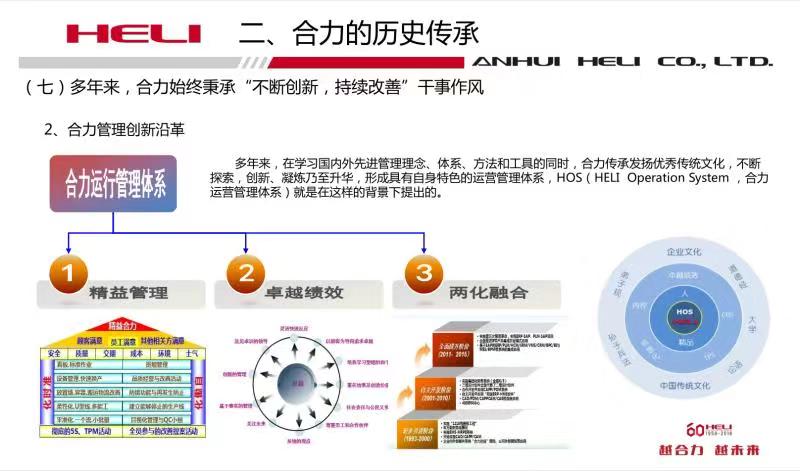 合力副總經理都云飛介紹了卓越績效模式導入、推進、成效和體會;集團政治處處長金世林介紹了黨建與經營融合的探索與實踐;研發部副部長畢勝介紹了IPD(集成產品開發)管理體系建設;信息化部副部長張紀九介紹了集團工業互聯網建設;合力合肥鑄鍛廠廠長解明國介紹了創新引領傳統產業轉型升級之路;合力精益辦主任、企管部副部長陳軍介紹了企業基于方針目標管理體系的合力精益實踐。
