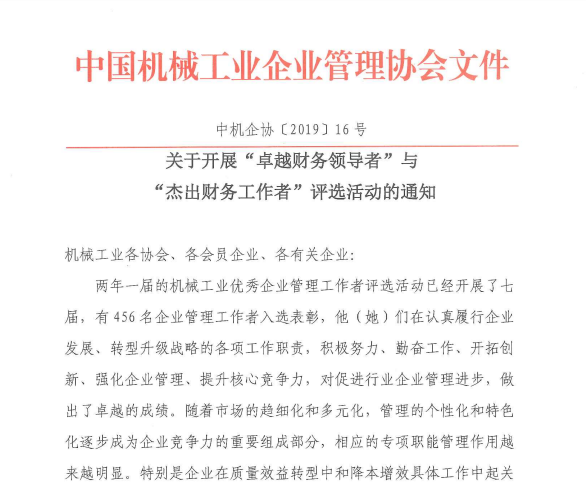 關于開展“卓越財務領導者”與“杰出財務工作者”評選活動的通知--中機企協[2019]16號.pdf