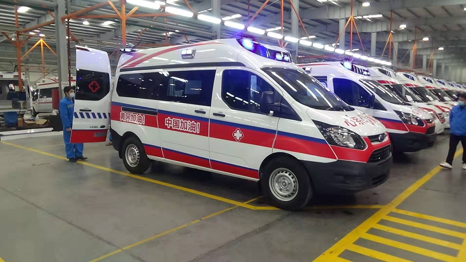 2月2日,江鈴汽車向武漢捐贈的10輛福特全順負壓監護型救護車開始陸續下線發車,投入抗疫一線使用,這是全國首批交付武漢急救中心的負壓救護車,將用于武漢火神山醫院轉運病人。