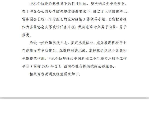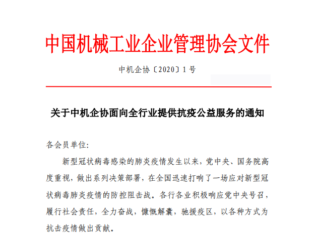 關于中機企協面向全行業提供抗疫公益服務的通知